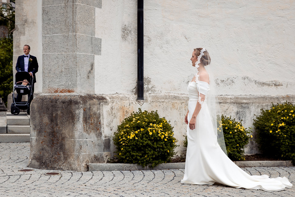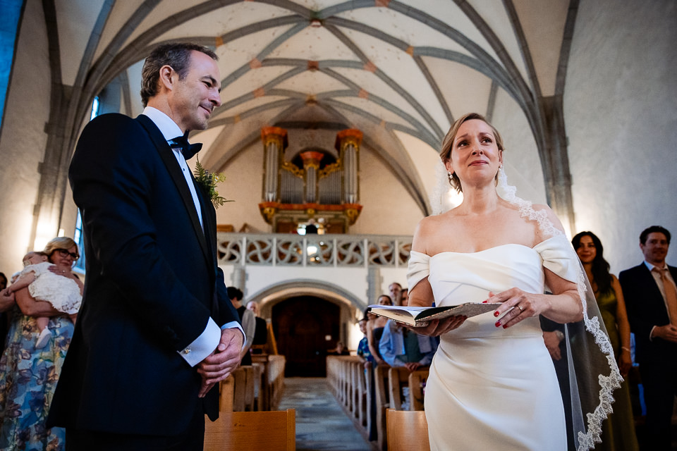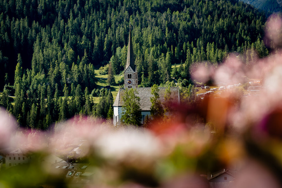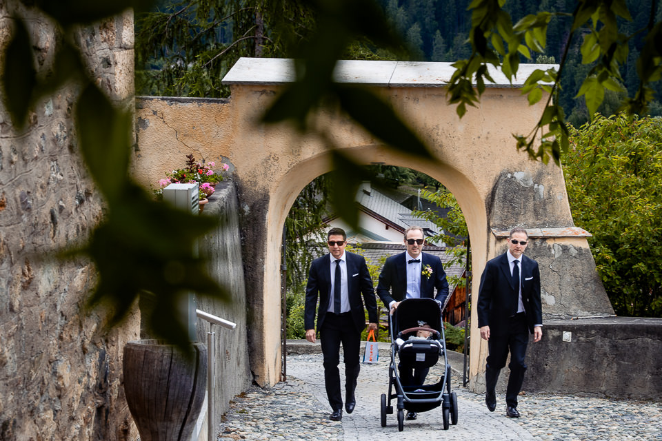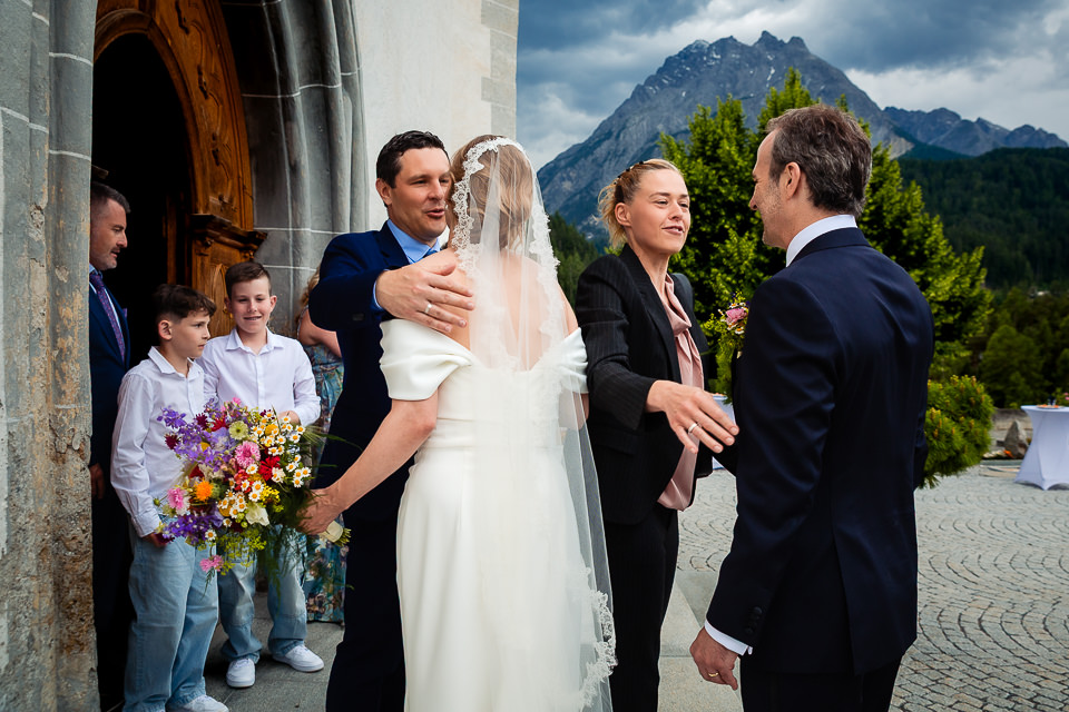 The wedding ceremony took place in the picturesque setting of the church in Scuol. Surrounded by the majestic mountains of the Lower Engadin, the couple exchanged their vows. What made it so moving was the unique blend of Swiss and American wedding traditions – a perfect symbiosis of local heritage and international flair.