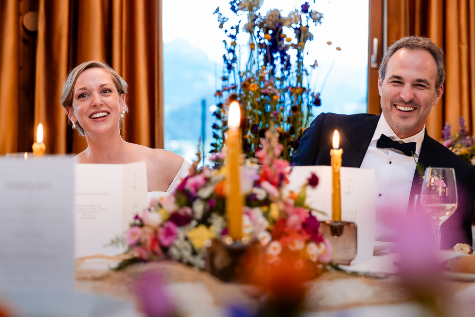 In the evening, Hotel Belvedere transformed into a festive wedding location full of lights, colors, and international guests. While the culinary team served regional delicacies with a creative American twist and wonderful wines, several speeches and a lot of fun made the evening very special.