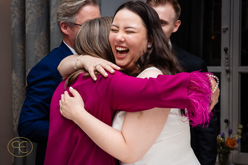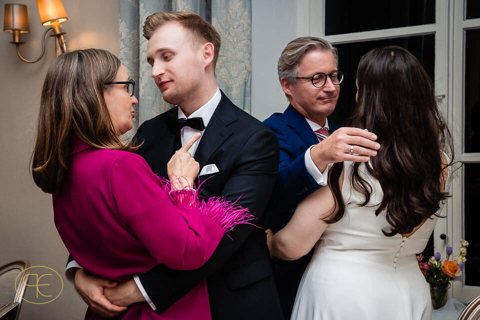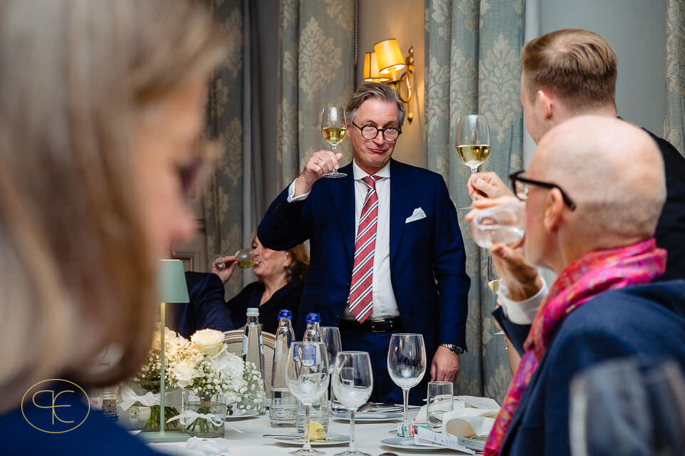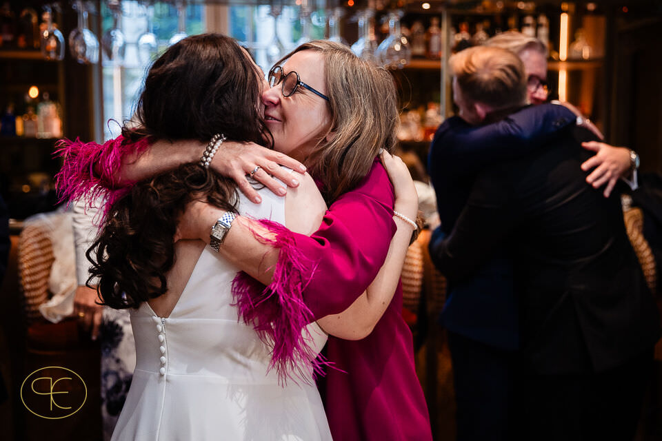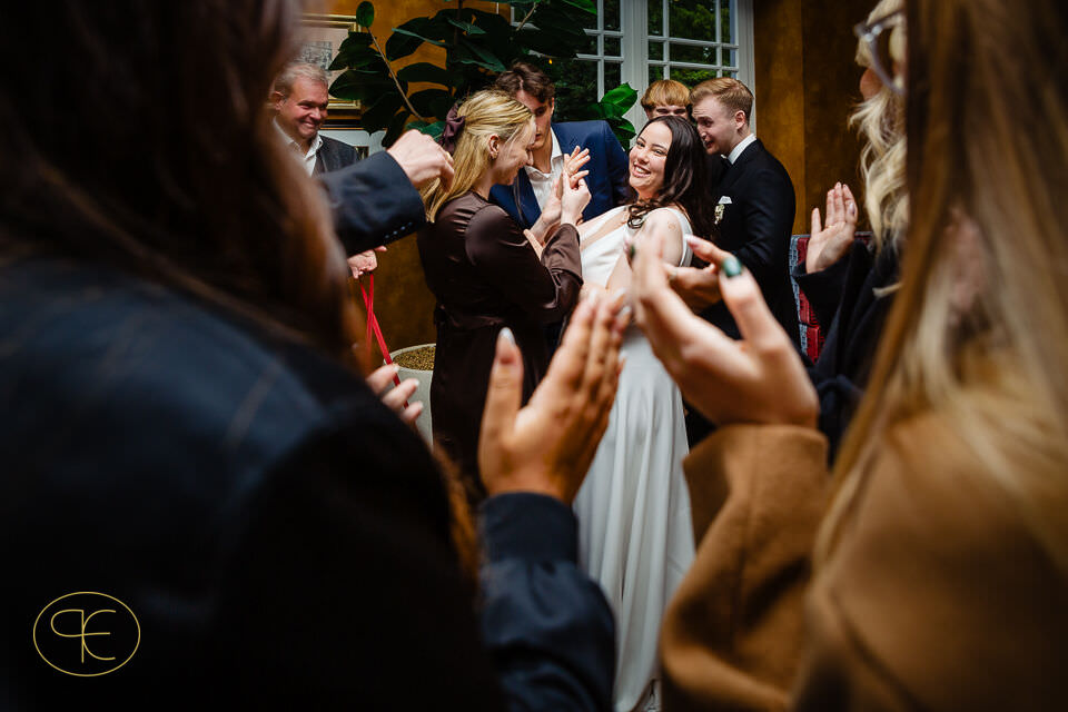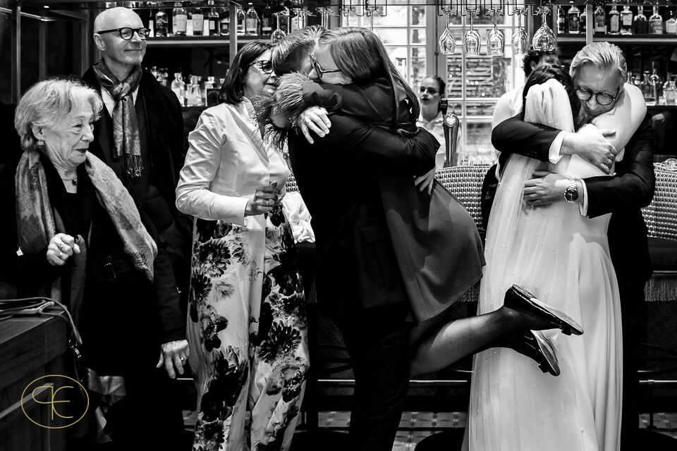 Der Nachmittag war gefüllt mit Gesprächen, leisen Begegnungen und viel Lachen. Nichts war inszeniert, alles durfte entstehen. Für mich als Hochzeitsfotograf in den Niederlanden sind es genau diese Phasen, in denen die stärksten Bilder entstehen – ehrlich, zeitlos und unaufgeregt.